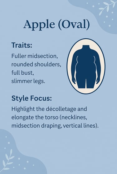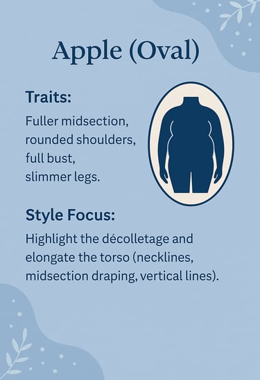 Apple shapes often notice weight gain around the midsection during menopause, with slimmer legs and arms. The challenge? Finding balance and creating shape without clinging to the tummy area.